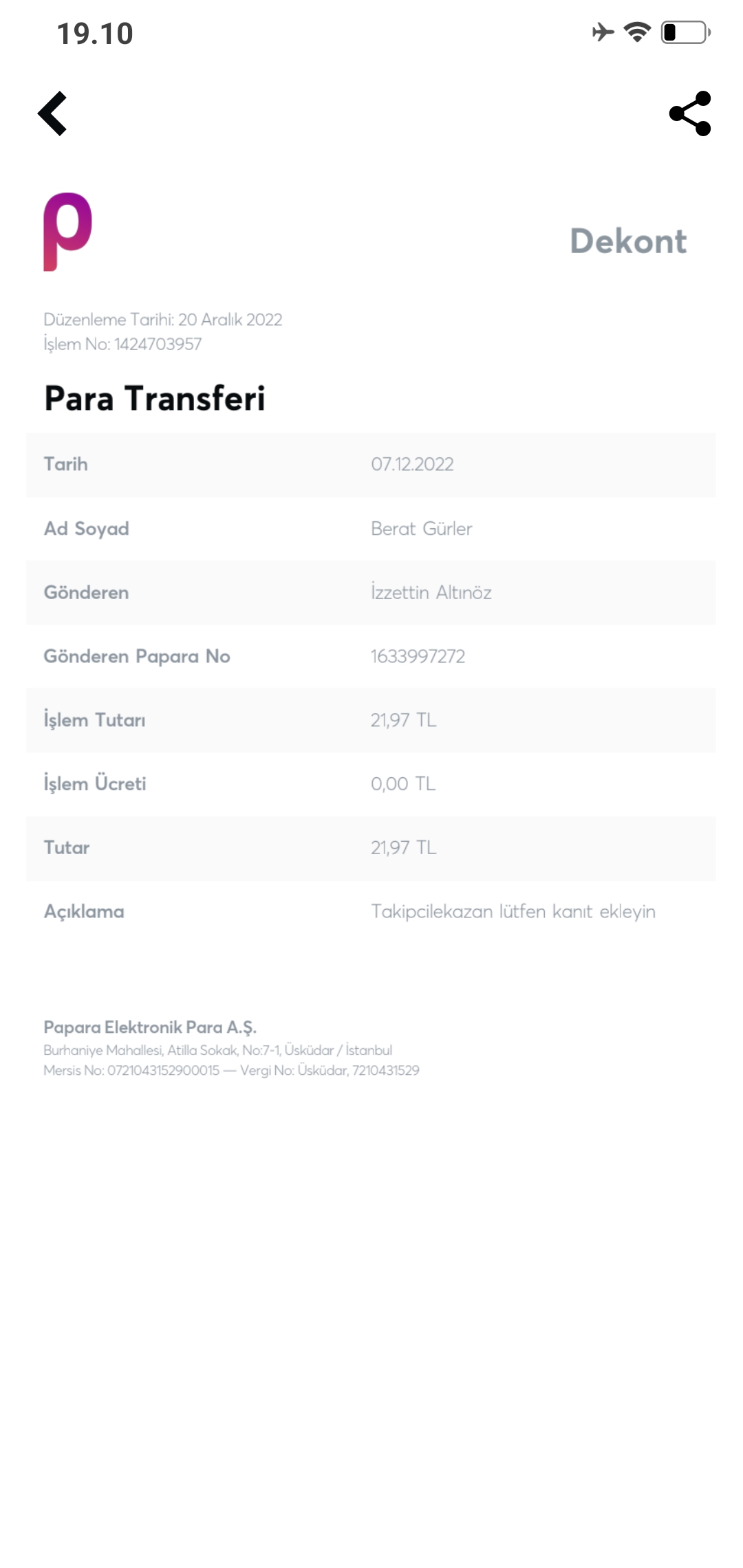 Toplam Ödenen: TL 119374.37