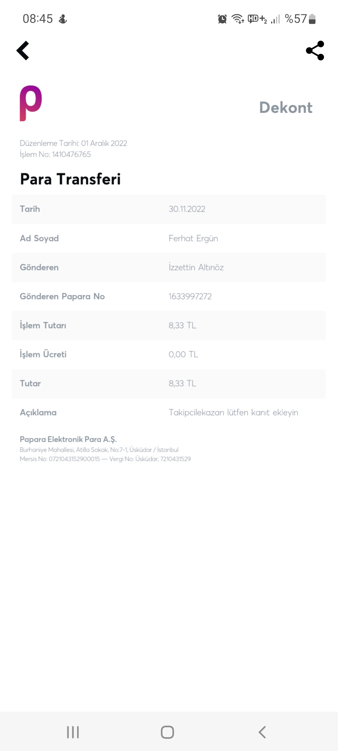 Toplam Ödenen: TL 119374.37